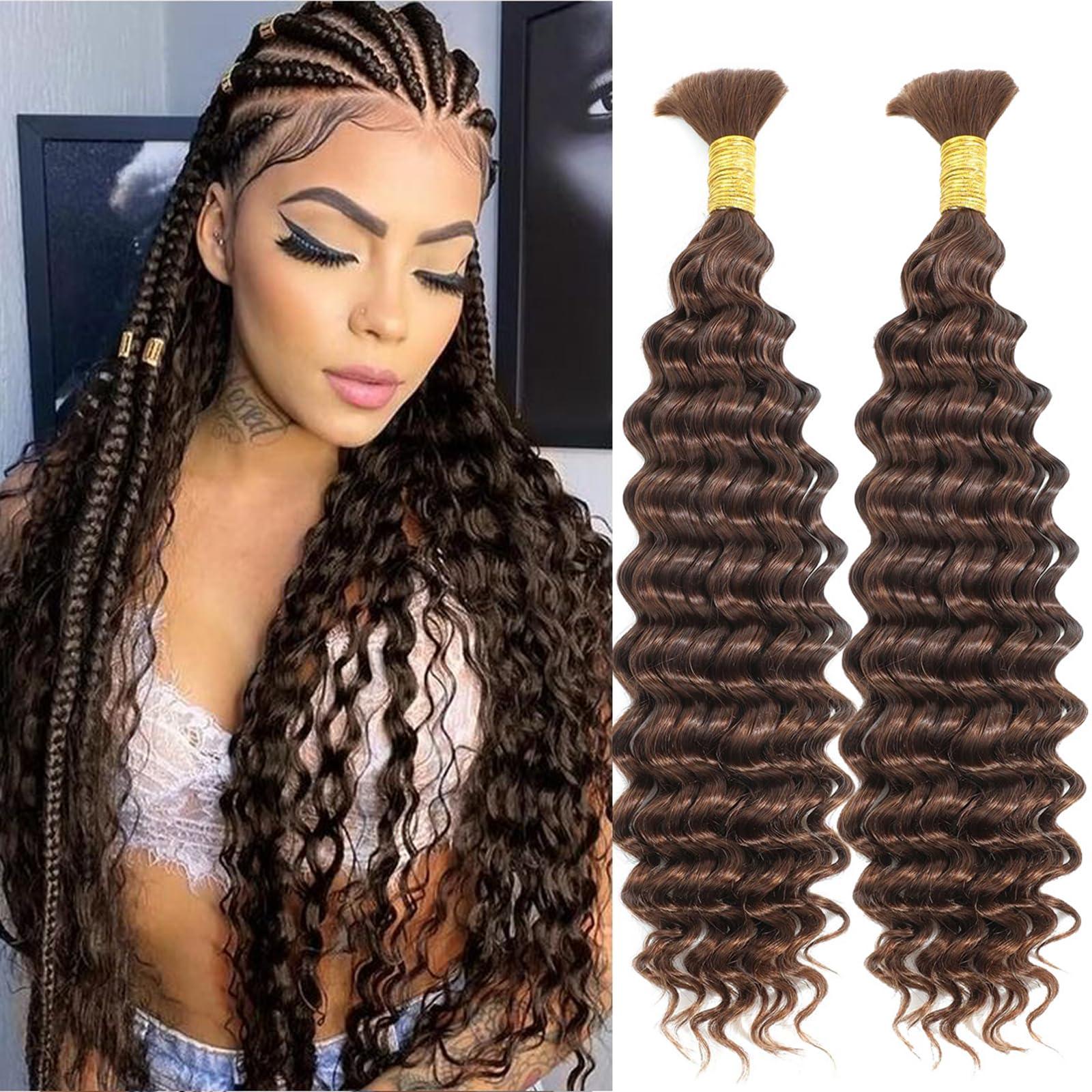 - Human Braiding Hair Color: Chocolate brown/Light Brown/color 4 Deep Curly Human hair braiding hair. The color of human braiding hair is as the pics show, very beautiful and fashion. You can choose according to your preference