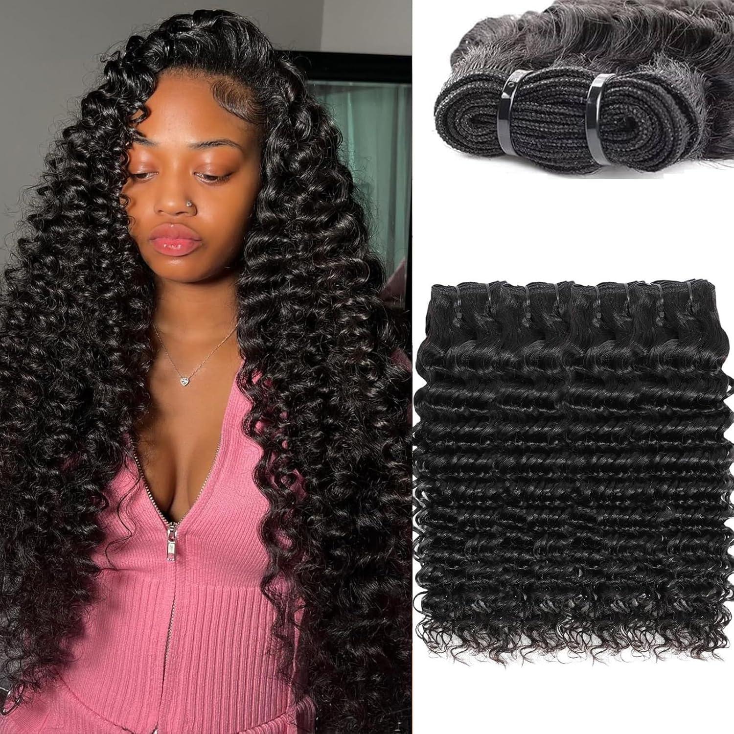 - Deep Wave Bundles Quality: 12A Human Hair Bundles,Raw Indian Human Hair Bundles, Natural Black Human Hair Bundles,Double Machine Weft, Hand Tied, Full And Smooth with Healthy Hair Ends; Tangle Free, Shedding Free, No Smell