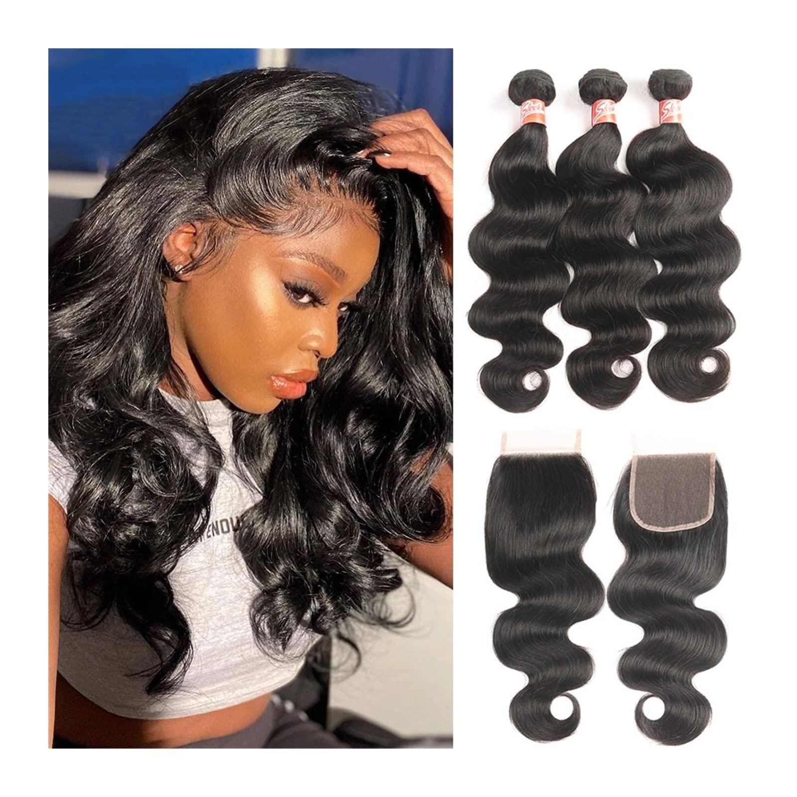 - Human Hair Bundles with Closure Advantages: Brazilian Body Wave Bundles with Closure Can be Dyed, Straightened, Permed, Bleached, Durable, Reusable. Suitable for Everyday, Party, Fancy Dress, Birthday or Any Other Occasions You Want
