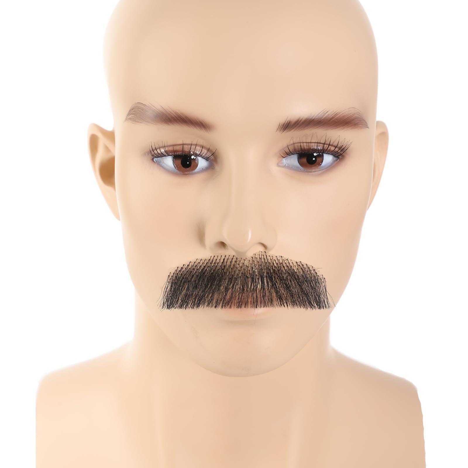 Human Hair Full Hand Tied Realistic Fake Mustache Brown Human Hair Jack Sparrow Fake Beard Fake Goatee Costume Beard Fake Facial Hair Lace Beard for Women Halloween Funny Cosplay CostumeBLACK