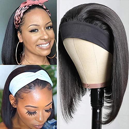 - Versatile Headband Bob Wigs---180% Density Enough Thick Human Hair None Lace Front Bob Wig with Headband Attached Scarf Headband Half Wig, Natural Color Headband Wig Perfect for Black Women Restyle to Any Various Different Hairstyle with this Headband Bob Wig. The Hair Can Be Dyed, Curled and Flat Iron to Any Texture You Preferred.