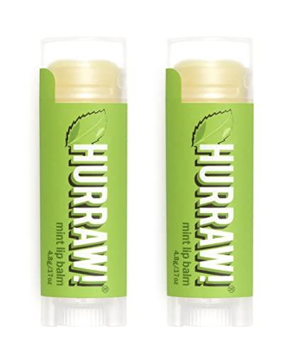 - TWO 4.8g/.17oz Oval Tubes of Mint Lip Balm packaged in a white HURRAW! branded pillow box. Awesome tingle and crisp and a long lasting minty treat for your lips! The icy scent of our mint lip balm reminds us of those 1970's peppermint patty commercials (swoon). Made with certified organic, vegan, and raw ingredients. Hurraw! Lip Balms are certified 100% all natural origin, cruelty and gluten free. Non-GMO. Bee, Shea, Soy and Palm Free.