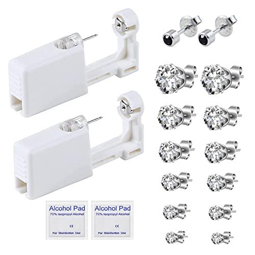 - Package ContentsYou will receive 2 pack ear piercing guns, 2 piece of 4mm black diamond earrings (Built-in the ear pierce gun), 12 piece silver diamond stud earrings(Individually packaged), 2 cleaning cotton pads
