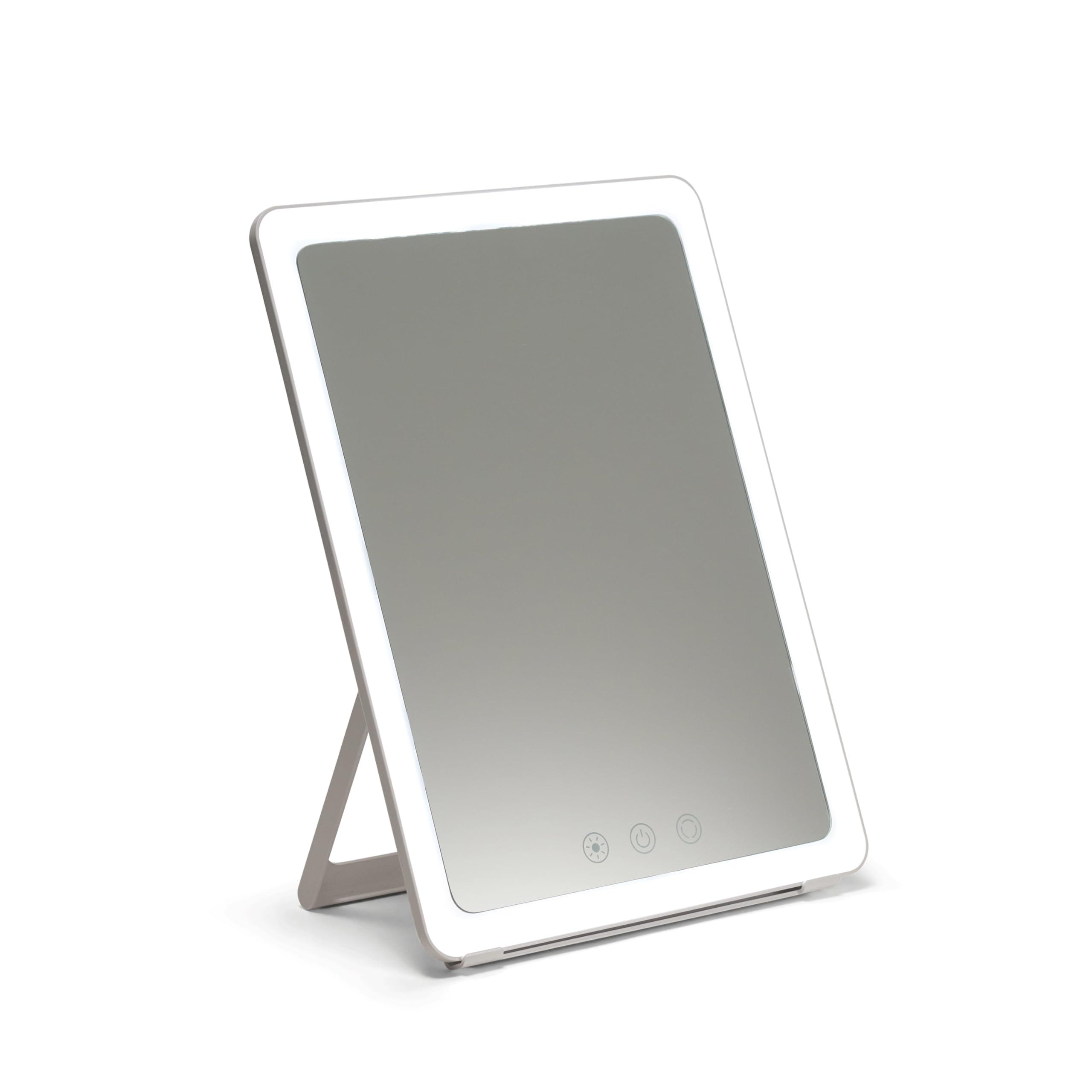 - PORTABLE LED VANITY MIRROR: The ILIOS LIGHTING LED vanity mirror is a sleek, lightweight solution for flawless lighting on the go. Weighing just 1.5 lbs (0.68 kg) and roughly the size of a large iPad, this portable makeup mirror is perfect for travel, ensuring you have professional-quality lighting wherever you are.