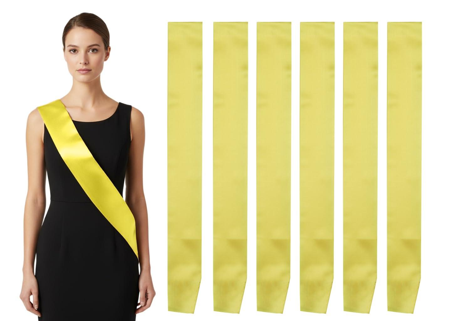 I-MART I-MART Pack of 6 Blank Satin Sash, Princess, Beauty Queen, Homecoming, Winner, Mayor, Make Your Own Pins, Party Plain Pageant Sashes, Yellow
