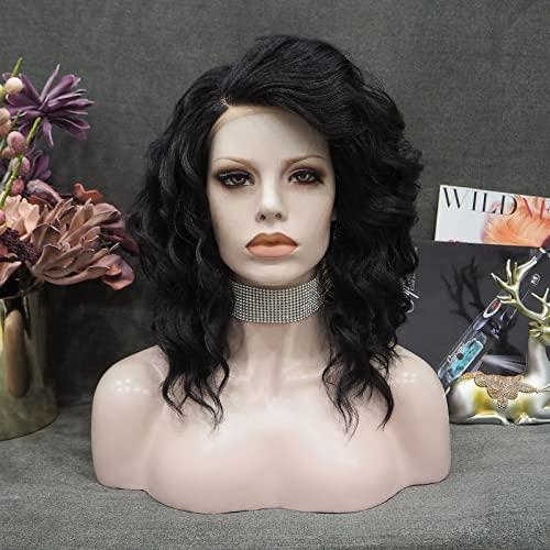 - Natural Black ColorShort Lace Front Blac Wig, layered bob wavy wig with natural hairline, black color with the trendy hairstyle, Soft and silk touching, Minimum shedding or knots