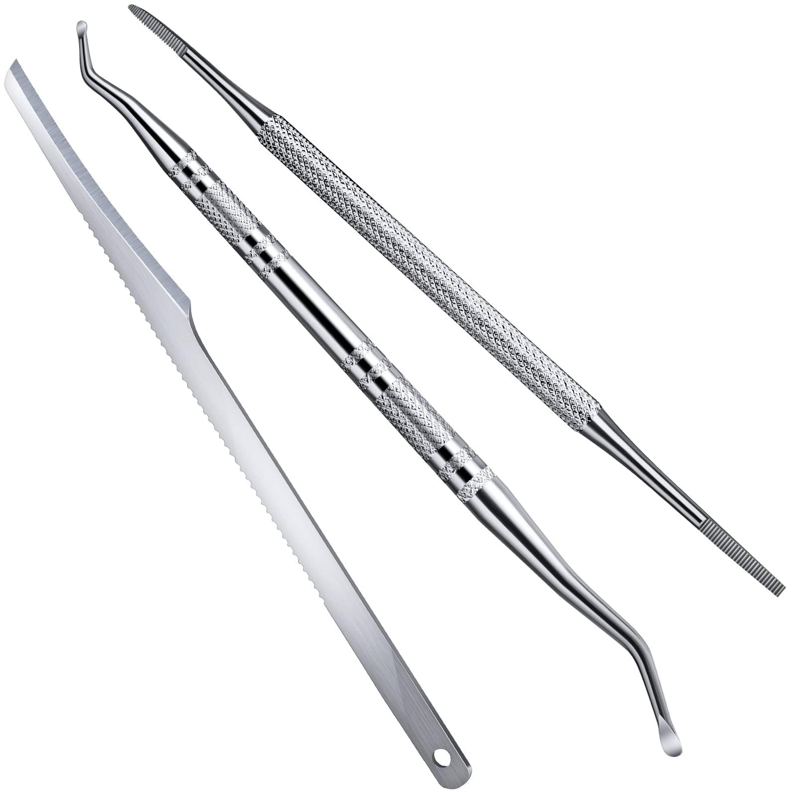 - Ingrown Toenail Cleaner Tools: Ergonomic designed pedicure knife, toenail file and lifter can meet all needs for scraping dirt, debris and other residues material from under the finger or toenail, and to cut off portions of the cuticle.