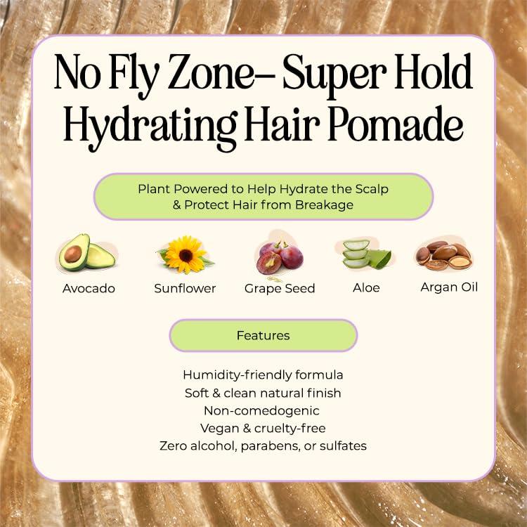 - No B.S.! (Bad Stuff): No Fly Zone Pomade is vegan and cruelty-free with Aloe, Sunflower, Argan, Vitamin B5 and more. It's made with no parabens, sulfates, alcohol, formaldehyde, silicone, or petroleum for sleek, healthier-looking hair.