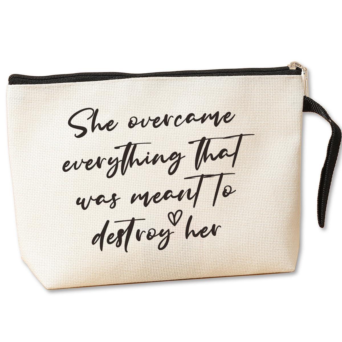 - Material: Durable and Soft Polyester material. Zippered Makeup Bag with quote and beautiful print on the surface.