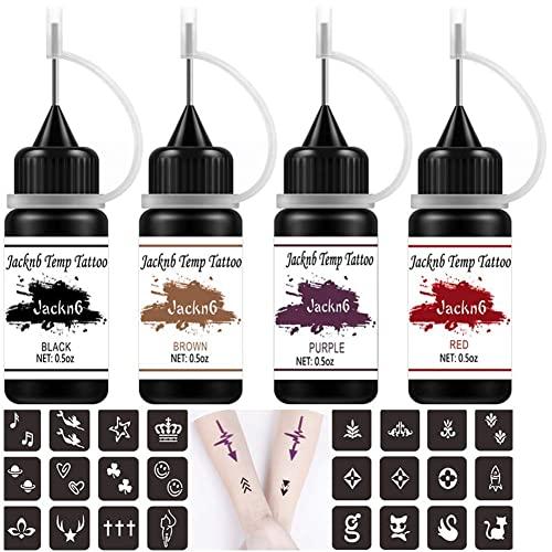 - FULL PACKAGE: 4 Bottled temporary tattoo ink, which contains all the tattoo accessories. self-adhesive tattoos stencils can help you to make delicate small tattoos