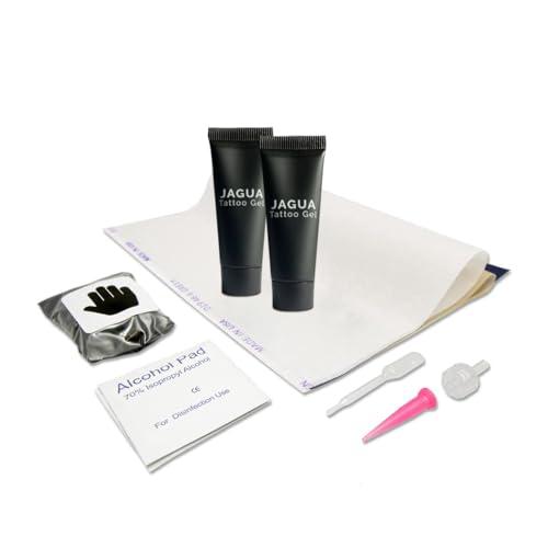 The Jagua starter kit is the perfect introduction to the world of body art. Try your own designs in a fun and safe way. Our start kit includes four bottles of fresh Jagua gel, a set of application tools, and a step-by-step guide to help you create your own unique designs. The gel is easy to apply and dries quickly. You can make 40 small designs, which is enough to experiment with different styles. Jagua gel is made from the Genipa Americana fruit, which is native to the Amazon rainforest. It has been used by indigenous tribes for centuries as a natural dye for body decorations. Jagua gel produces a dark blue-black color that is unique and eye-catching. The color lasts for about two weeks before gradually fading away. It is easy to apply and dries quickly, which makes it a convenient and fun way to experiment with body art without the commitment of a permanent tattoo. Our Jagua gel is 100% natural and comes with EU cosmetic certifications (EC1223/2009). Contents starter kit: * 2x 0.34 Fl Oz (10ml) Jagua gel tube * 1x Instruction folder * 1x Applicator needle (large) * 1x Dropper to avoid needle from clogging * 1x Transfer paper * 1x Disinfectant * 1x Gloves