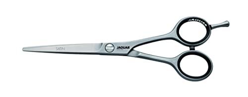 Jaguar White line satin hairdressing scissor with classic design for a traditional feeling during cutting. High-quality metallic coating. Protection against nickel allergy. Due to the ice-treated quality steel in combination with a flat cutting edge angle, it offers very well, long-lasting sharpness with good slicing capability. Precise blade shape and VARIO screw for very well movement. Length: 6.5 inch.