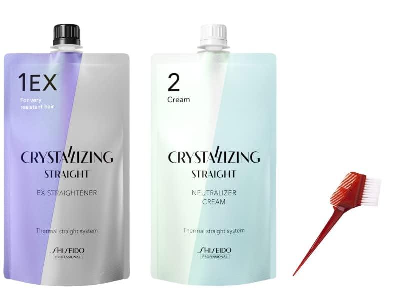 Japanese Hair Rebonding Straightening Permanent Crystallizing Straight Hair Straightener (1EX) 13.52Floz Neutralizing Cream (2) 13.52Floz For Very Resistant Hair Including Hair Brush