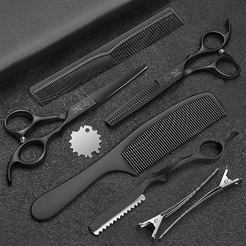 - All-in-one Scissors Set: 1 x Straight Scissor, 1 x Thinning Shear, 1 x Razor, 1 x Cleaning Cloth, 2 x Comb, 2 x Hairpin, 1 x Bag, 1 x Screw adjuster. Our scissors set meets all your haircutting and styling needs, suitable for men, women, elderly, and childern.