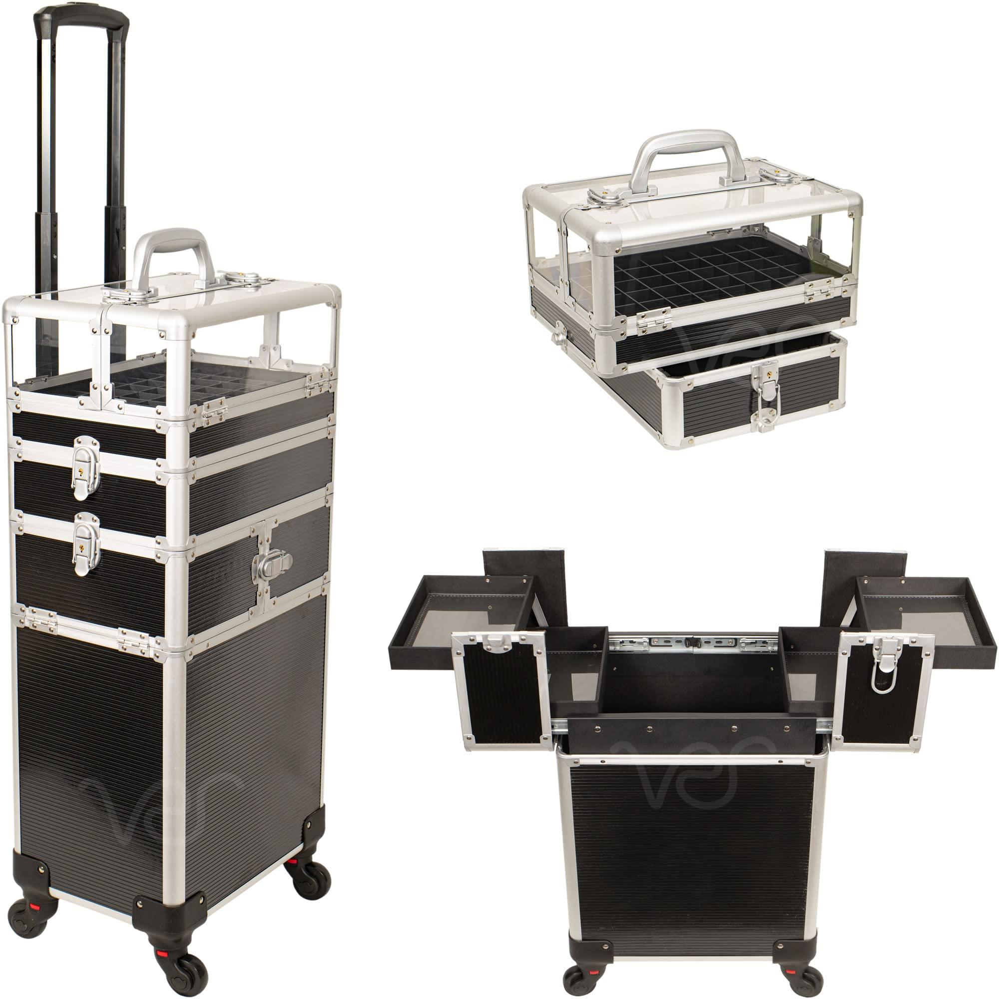 - [ Versatile Makeup Train Case ]: This trolley makeup case is a must-have piece for professional MUA, manicurists, hairstylists, beauticians, nail tech students, whoever possesses a mountain of cosmetics should have their own makeup organizer. Besides, it is also an impressive and thoughtful gift for your family and friends. Overall case dimension with wheels: 13.5 x 9.5 x 32