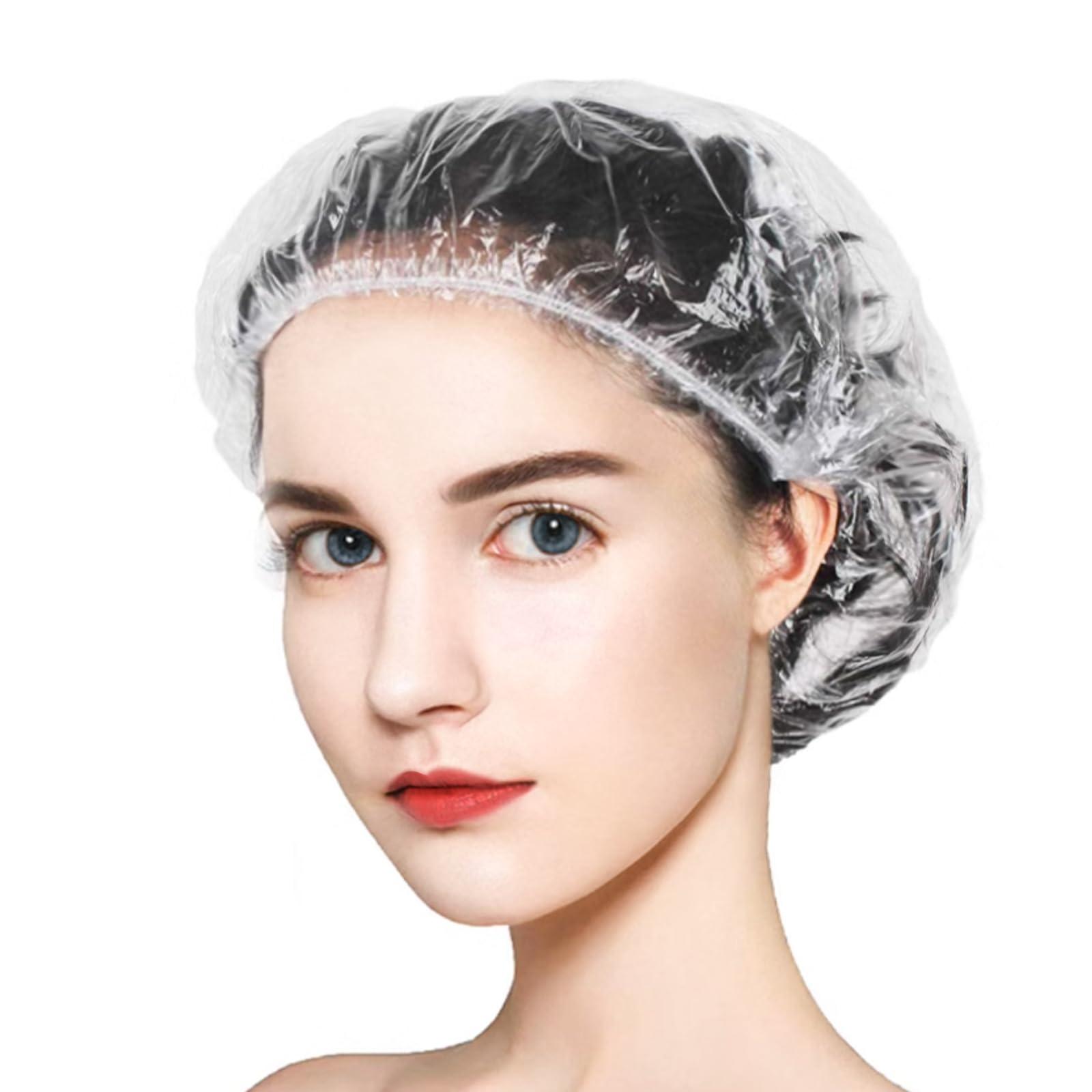 - Disposable: Pack of 100 clear plastic shower caps for single-use convenience.