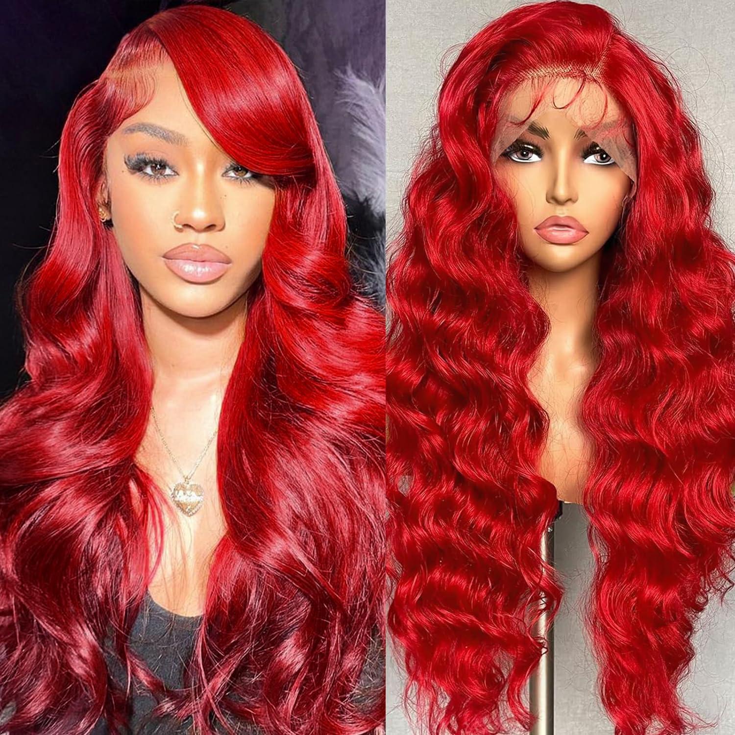 - Red Wig Human Hair Quality: 13x4 HD lace front wig realistic look, flawless melt with scalp, can be dyed, curled and straightened just like your own hair