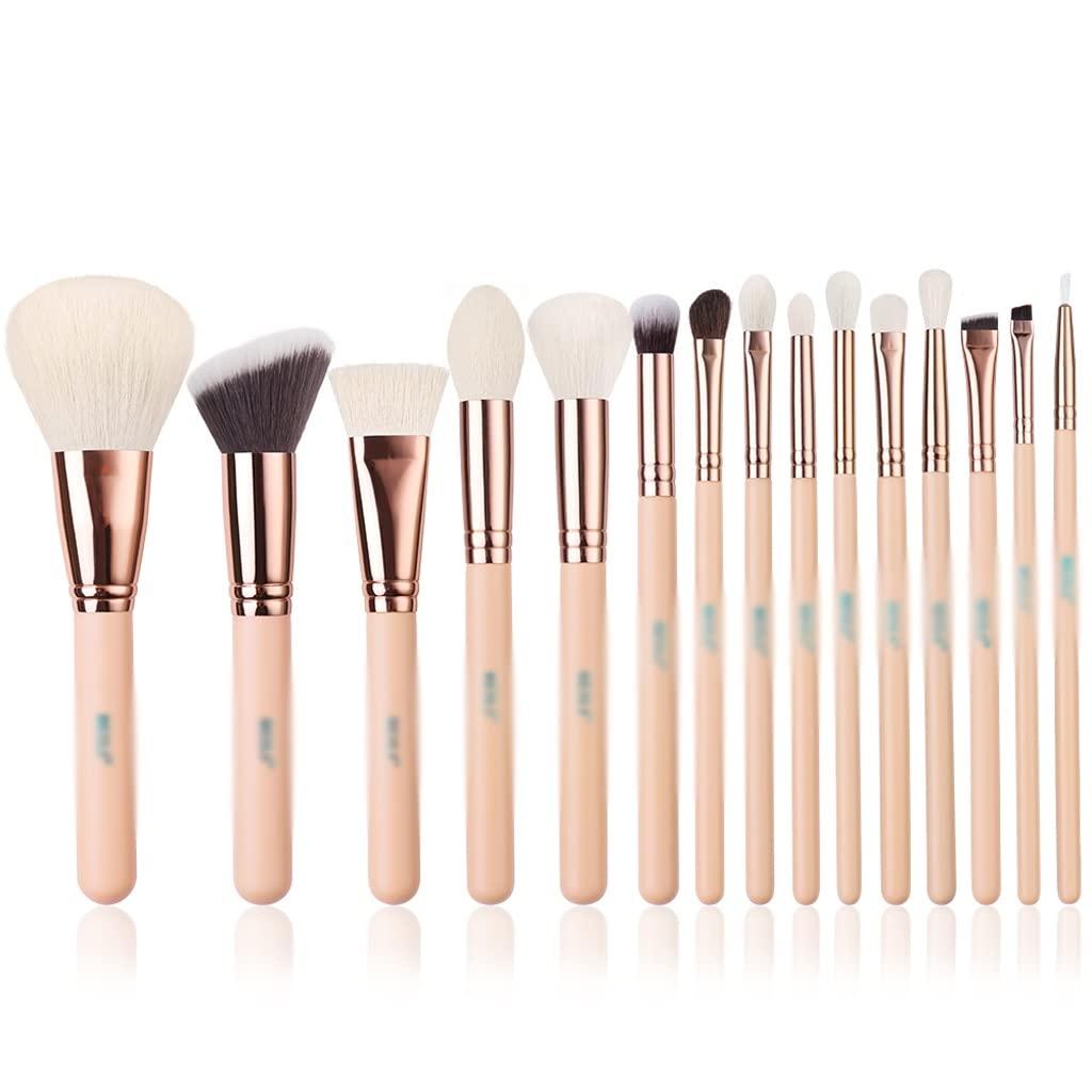 JMKJMJP JMKJMJP 15-Pack Rose Gold Makeup Brush Pink Natural Goat Hair Foundation Powder Blush Eyeshadow Brush Set
