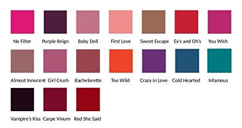 This ultra saturated liquid formula delivers an intense shot of matte pigment in one easy swipe. A single application gives you smear-resistant coverage that stays put for hours. Full coverage, intense pigment, and a matte finish in an easy-to-apply liquid formula. One sweep delivers vibrant longwearing color that sets all day. Creamy, luxurious formula glides on smoothly, delivering a matte effect without any drying side effects. Paraben-Free, Fragrance Free.
