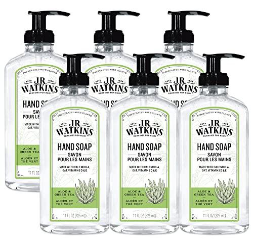 J R Watkins Aloe and Green Tea Natural Liquid Hand Soap, 11 Ounce -- 6 per case. Formulated with premium natural ingredients and essential oils, this hard working, natural hand soap create a smooth lather of suds that rinse away, leaving your hands exceptionally clean and smooth. Gentle on hands Watkins premium fragrance Attractively packaged
