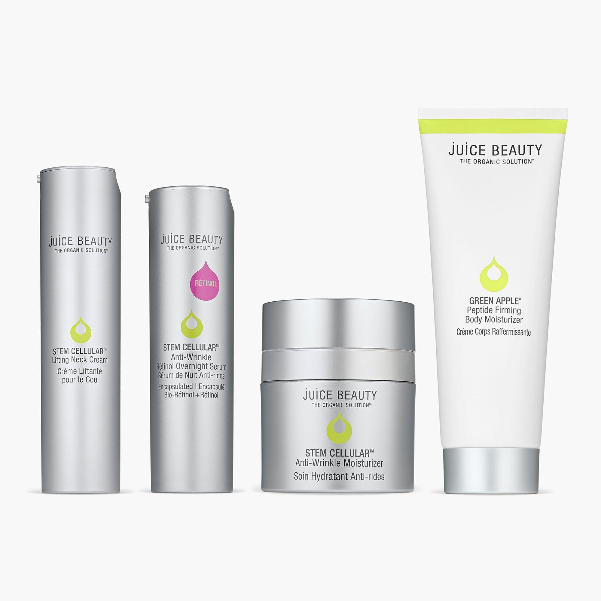 - FIRMING SKINCARE ROUTINE - Includes Stem Cellular Peptide Lifting Neck Cream (50 mL), Stem Cellular Anti-Wrinkle Retinol Overnight Serum (30 mL), Stem Cellular Anti-Wrinkle Moisturizer (50 mL) + Green Apple Peptide Firming Body Moisturizer (240 mL).