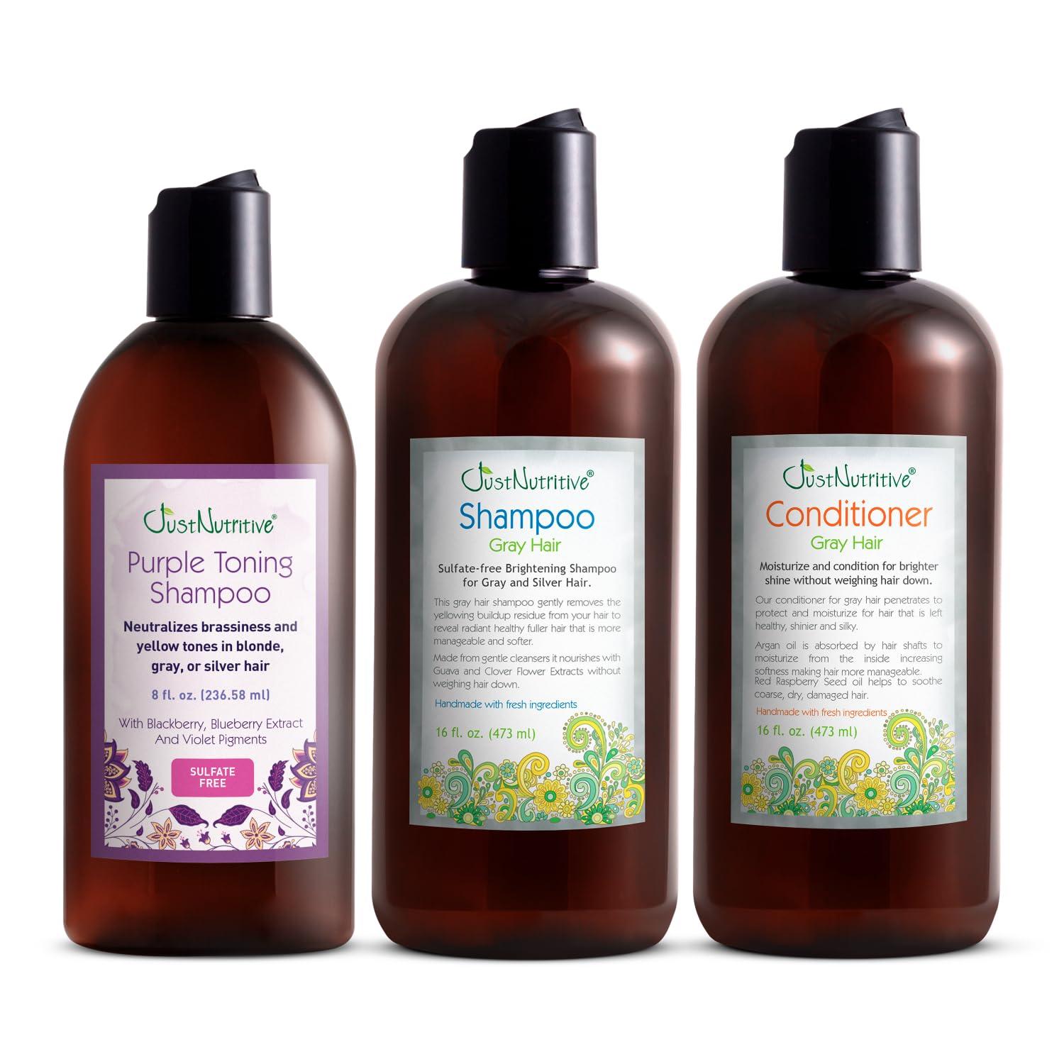 - Complete Gray Hair Care Trio Say goodbye to brassiness, yellowing, and dryness with our powerful Purple Toning Shampoo, Gray Hair Shampoo, and Gray Hair Conditioner. This trio works together to keep your gray, silver, or white hair vibrant, soft, and healthy, providing you with everything you need for beautifully nourished hair.