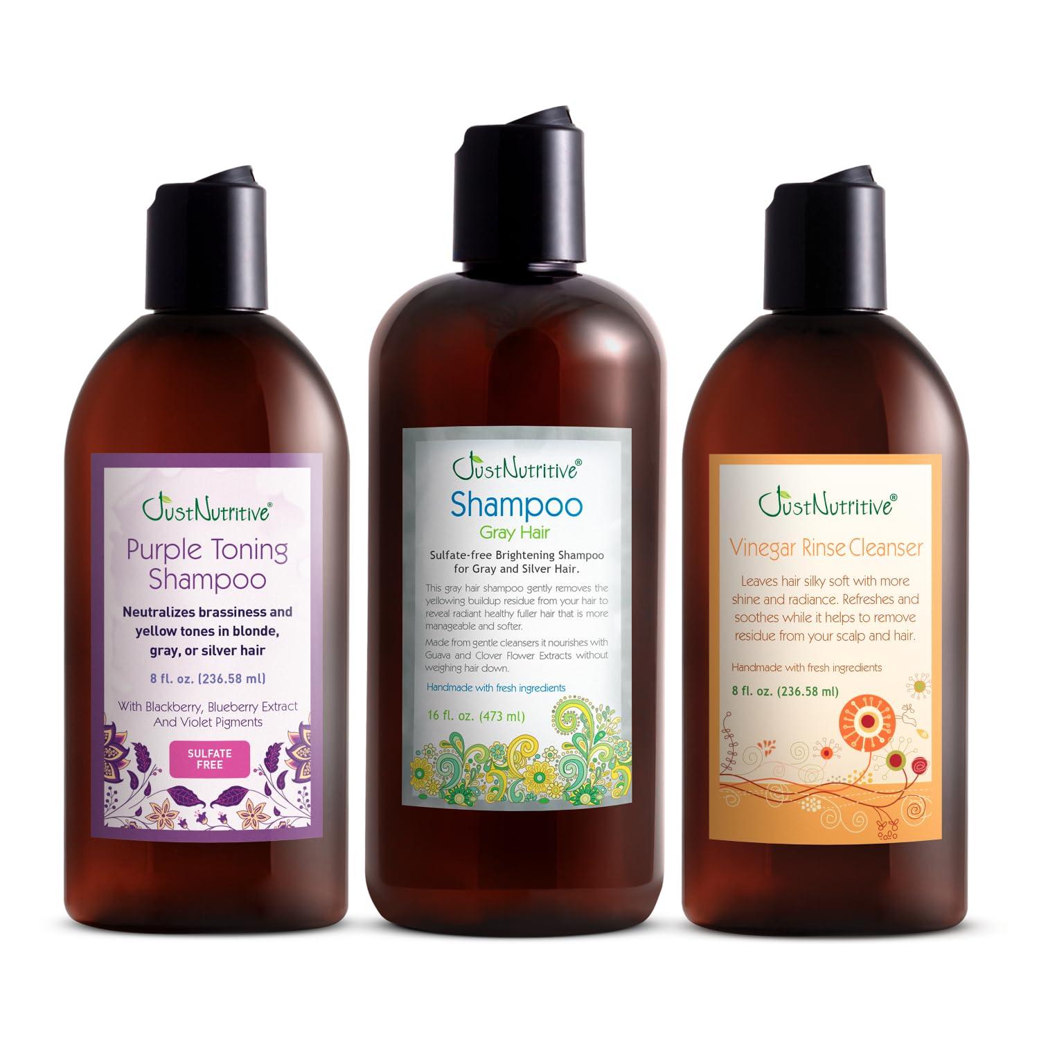 - Complete Gray & Silver Hair Care Solution Our powerful trioPurple Toning Shampoo, Gray Hair Shampoo, and Vinegar Rinse Cleanserworks together to keep your gray, silver, or white hair vibrant, cool-toned, and full of life. Say goodbye to brassiness and dullness with a routine that truly delivers.