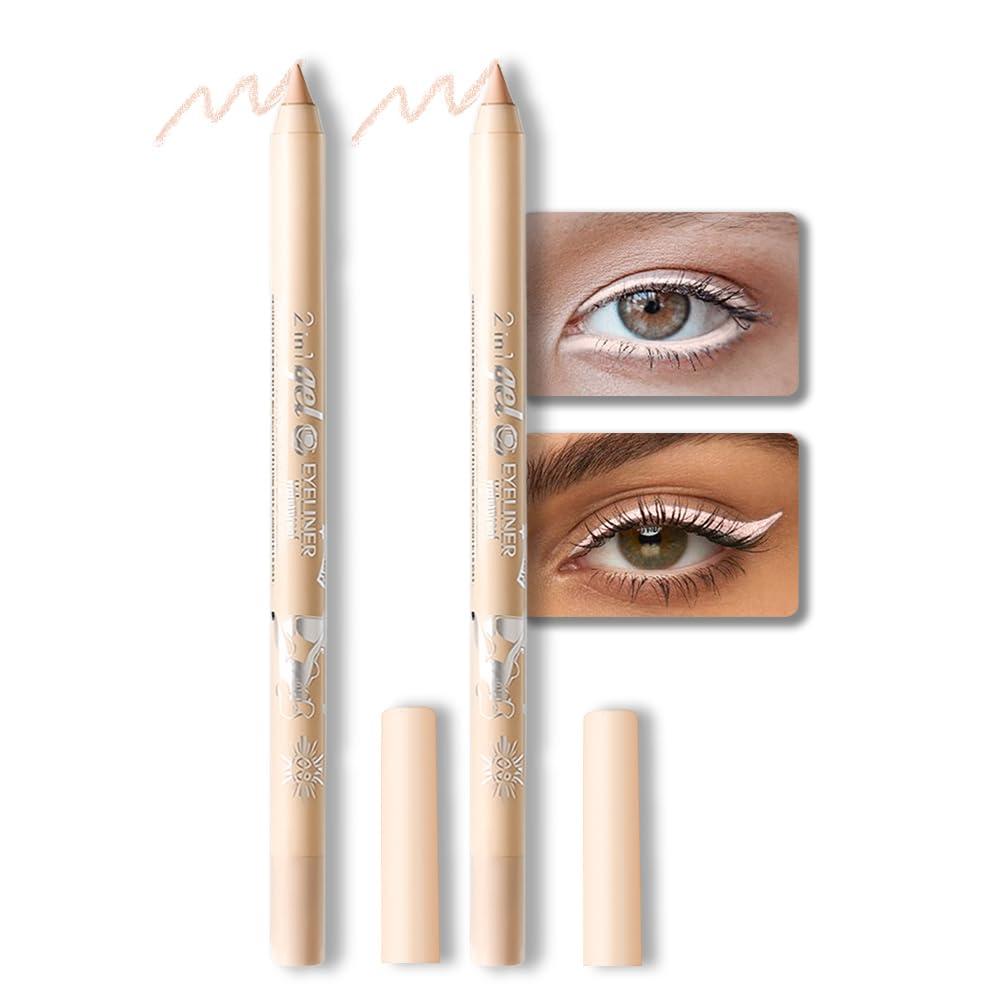 Kaely Kaely 2Pcs Nude Waterline Pencil Eyeliner, Sharpenable Multi-Use Gel Eyeliner Pencil, Eye Liner Waterproof Smudge proof, Smooth Eye Makeup Liners, delineador de ojos contra el agua, 03+03