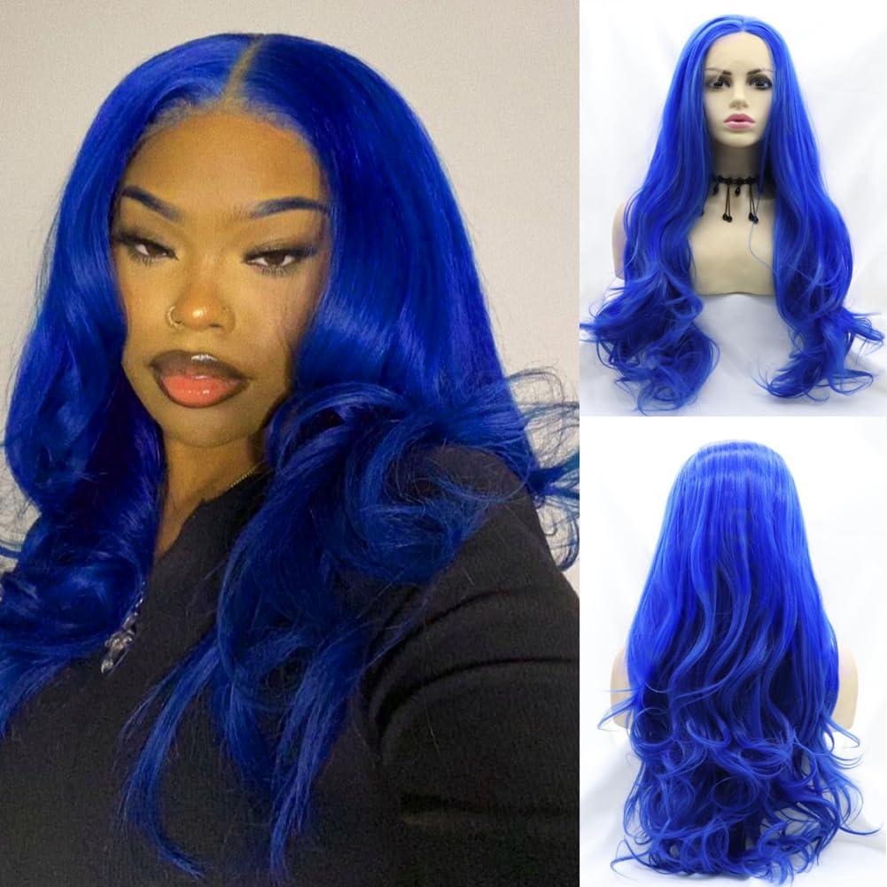 - Dark Blue Synthetic Wig Blue Wigs For Women,Free Part Lace Front Wig High Density Long Body Wavy Navy Blue Lace Front Wig With Transparent Lace For The Best Natural Looking,Top Quality Lace Front Wig With Realistic Hairline,Soft Mermaid Lace Front Wigs, HD Lace