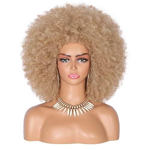 - High Quality MaterialSuper soft and super lightweight long kinky wigs are made of high quality synthetic heat resistant fibers, pretty large volume, stunning look, natural luster, breathable, realistic, soft to the touch. Our huge afro kinky wigs can also be heated up to 180C (350F), feel like human hair, and style with bangs so you don\'t have to worry about your beauty secrets being discovered, and enjoy the unique beauty that wigs bring to you.