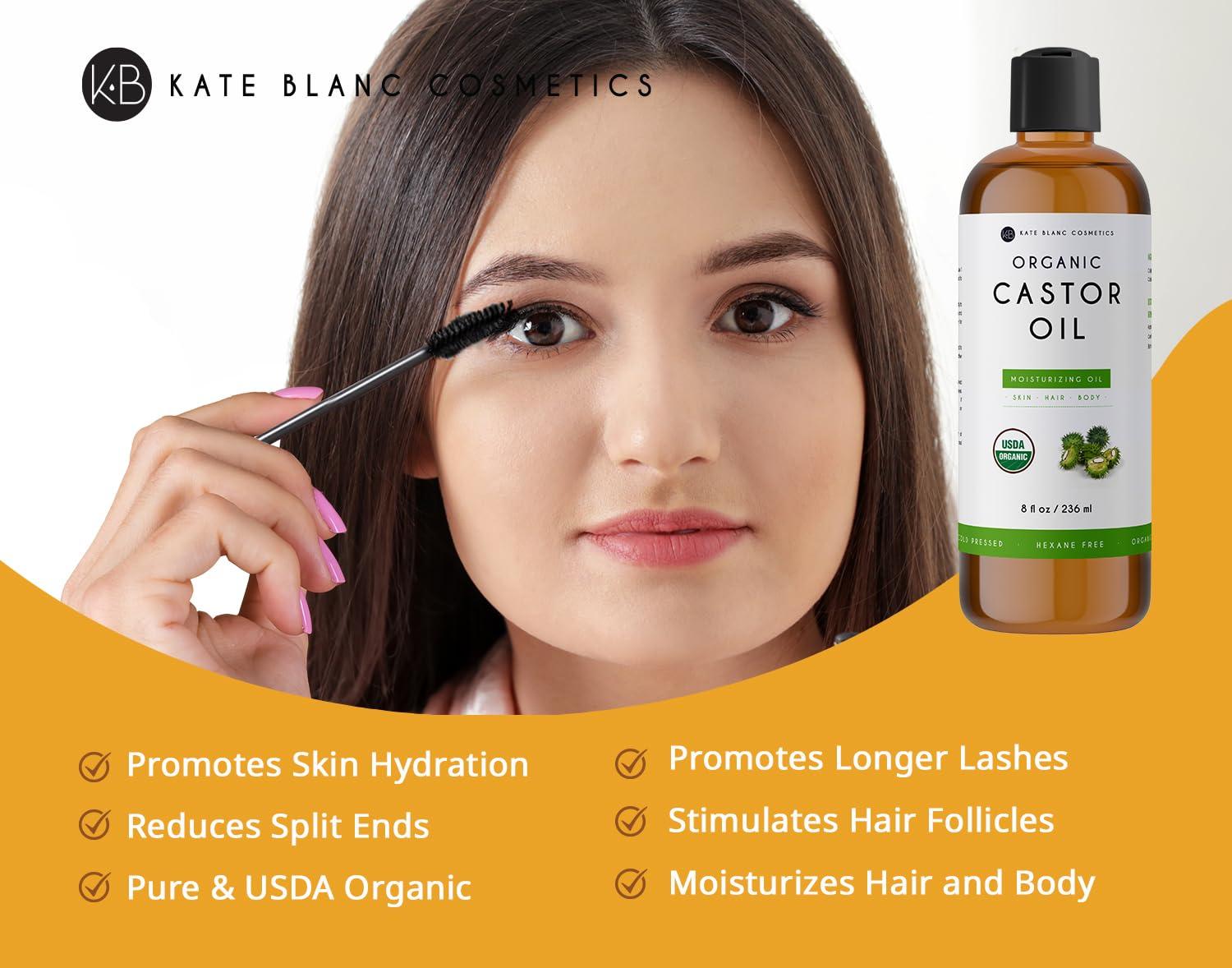 - USDA CERTIFIED ORGANIC CASTOR OIL - Kate Blanc Cosmetics Organic Cold Pressed Castor Oil is certified by USDA and is authentic, pure, natural, and hexane free. This 8oz bottle is in plastic and has no starter kit.