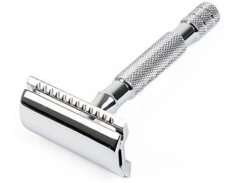 The Kensington Classic Safety Razor is a no-fuss shaver that will get the job done right. The 3-piece razor allows for a medium-aggressive shave but is still smooth and comfortable. The handle is thatched for an easy grip which fits perfectly in your hands. Total Length: 3.35 inches (85mm) Note: This razor includes one free Wilkinson blade