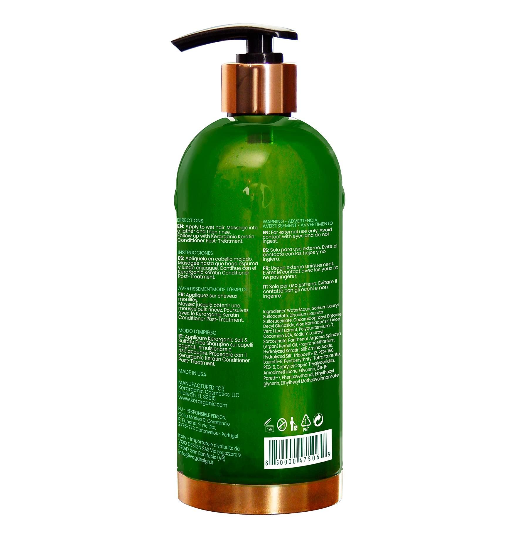 KERARGANICs PREMIUM KERATIN SHAMPOO MAINTENANCE SALT & SULFATE FREE is not just a regular shampoo, but a conditioning and fortifying shampoo. A concentrated formula, free of the abrasiveness of salt from regular shampoo, it gently cleanses the hair without removing nutrients. Packed with natural extracts, oils, essential nutrients and vitamins it conditions and moisturizes the hair as well. Hydrolyzed keratin the protein the hair is made of mends and repairs damaged fibers, and Argan oil revitalizes and prevents damages. An added feature of PREMIUM KERATIN SHAMPOO MAINTENANCE SALT & SULFATE FREE is U.V. and heat protection, obtained through a combination of natural and cosmetically engineered ingredients.