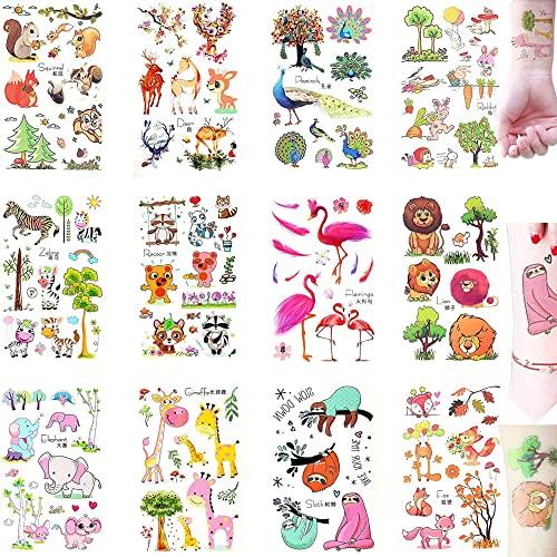 Keep the smile on your kid\'s faces with fun temporary tattoos for children. Your kids will enjoy wearing these fun designs and characters. With hundreds of designs in each set, these kids temporary tattoos are great for birthday parties, costumes, Halloween, school events, classroom prizes, gifts and presents. Choose from different sets of tattoos for boys and girls of all ages. These are great gifts for kids ages 3 years old and up. This set comes with 12 sheets filled with more than 100 colorful animal theme tattoos. They make great birthday party favors for kids, boys and girls of all ages.