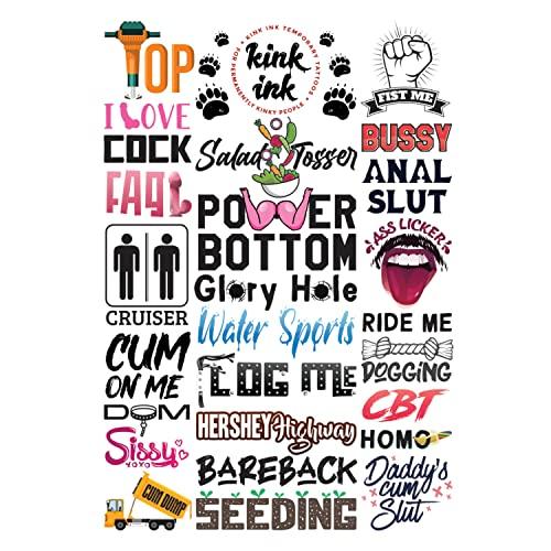 - CELEBRATE YOUR KINKY SIDE - Perfect for BDSM parties, role-play nights, nightclubs, music festivals, and photo shoots. This A4 Male Gay Kinky (Mega Sheet) includes 26 queer temporary tattoos to proudly showcase your desires.