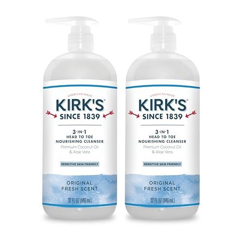 - SENSITIVE SKIN FRIENDLY Our 3 in 1 is clinically tested, safe for sensitive skin. Free of Sulfates, Parabens, Phthalates, EDTA, Artificial Fragrance, Colorants, Gluten, Non-GMO project verified and Vegan. Kirks Nourishing Cleanser is great for the whole family! Sold in a convenient 32 oz. pump bottle.