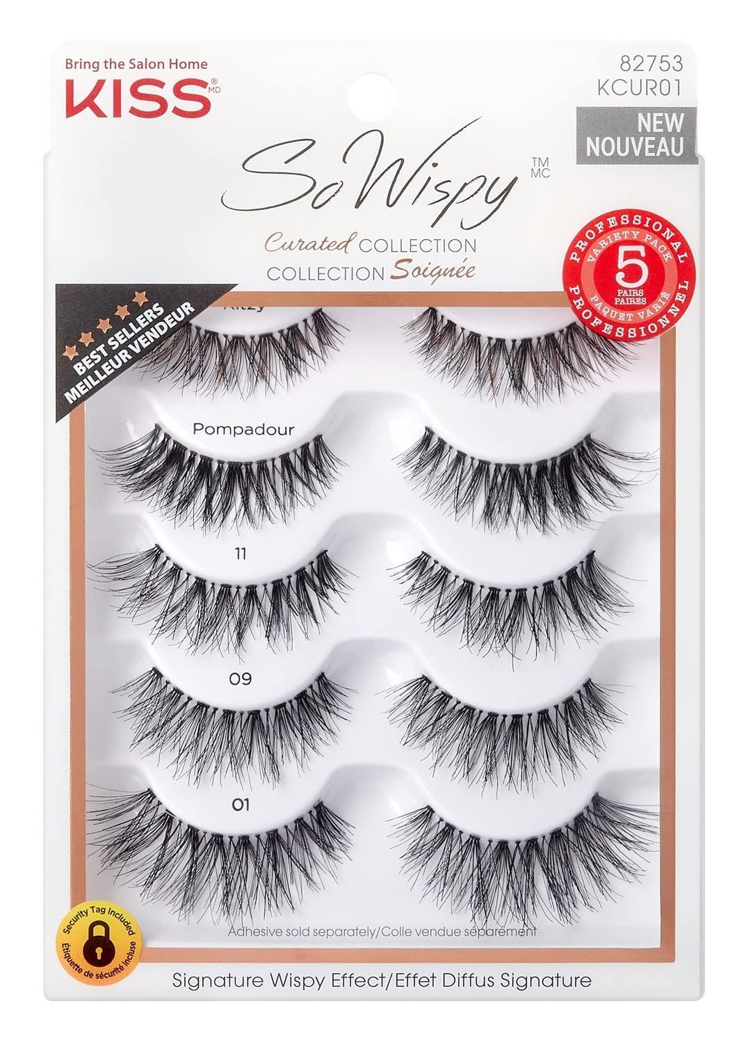 A curated collection of our popular wispy lashes. Unique crisscross pattern lashes blend seamlessly with your natural lashes. Multi-layered false lashes with tapered end technology, and no damage to natural lashes. 5-pair value-priced multipack.