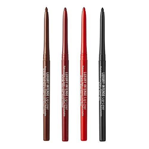 Kiss New York Luxury Intense Lip Liner 4 PACK (Dark Plum Purple, Deep Red, Bright Red, Black)