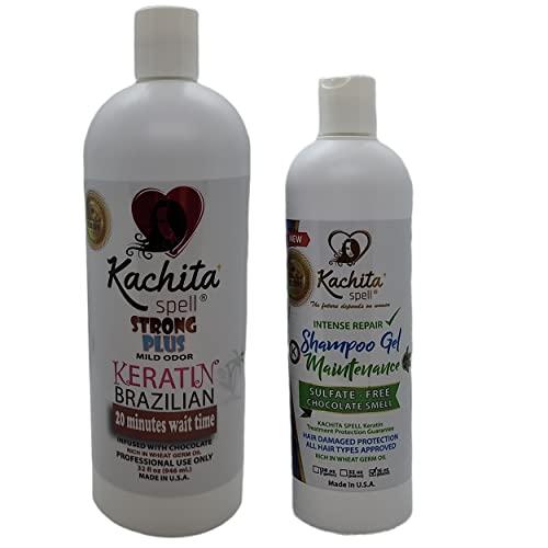 - Kit Includes: NEW Brazilian Keratin Treatment Kachita Spell Chocolate 32 oz and 16oz (500ml) Kachita Spell Shampoo Conditioner for Keratin Treatments Sulfate Free, No Salt, No Paraben K-Shield
