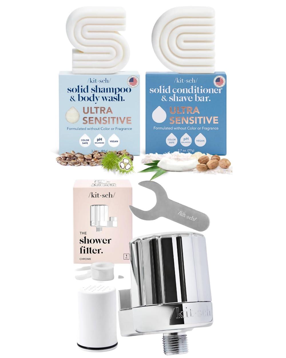 - SPA-LIKE SHOWER: Elevate your shower experience with the Kitsch Shower Filter, transforming your routine into a refreshing spa-like indulgence. These shower filter head for hard water gives you options that best fit for your home. Try chrome shower filters for silver shower, black shower water softener for black showerhead and terracotta shower head water filter for rose gold, bronze and gold showers.
