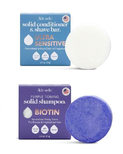 A bundle of Kitsch 2-in-1 Ultra Sensitive Hair Conditioner & Shave Bar & Toning Purple Shampoo Bar for Blonde Hair