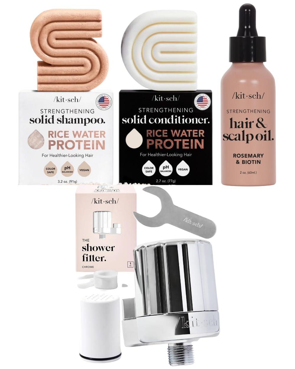 A bundle of Kitsch Rice Water Shampoo + Conditioner and Pre-Wash Scalp Oil
