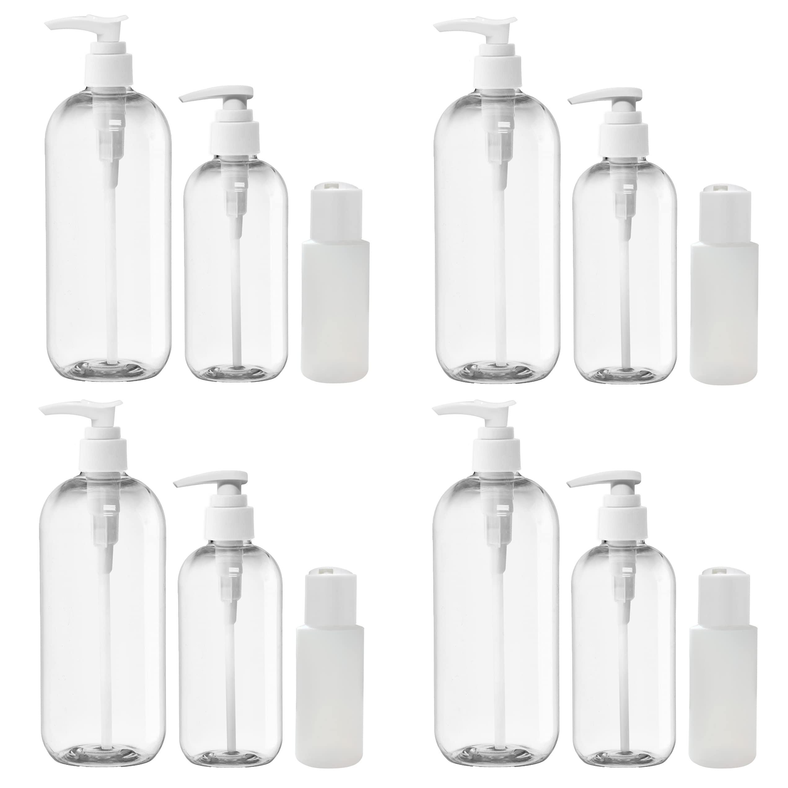 - / (--): 16oz & 8oz pump and 2oz squeezable refillable bottles are designed as simple and versatile that is also convenient and effective for multi-use. The pump can be locked to prevent outflow