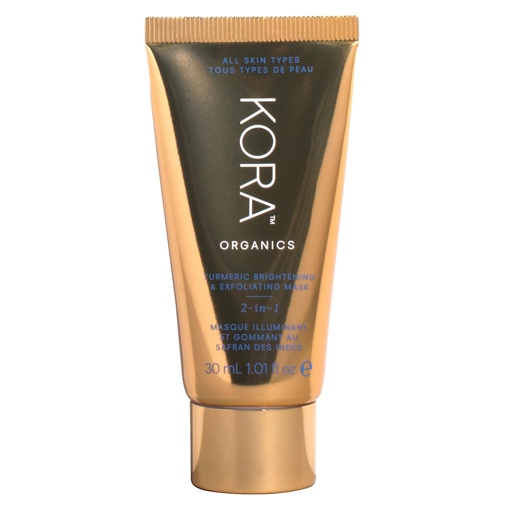 - KORA Organics Turmeric Brightening & Exfoliating Mask. A travel-size invigorating facial exfoliating mask formulated to revitalize, smooth and enhance skin radiance while purifying pores.