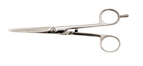 Professional hairdressing scissors made of stainless steel in modern surgical form, warm forged, hollow ground, length 6.0", mirror polished, and one blade micro-serrated with adjustable screw. Stainless, a slim surgical style, with micro-serrations on one blade for a perfect cut, even on thick hair. KRETZER HAIR - cut by cut creative! Professional stainless hair cutting scissors / shears for individual, creative styling