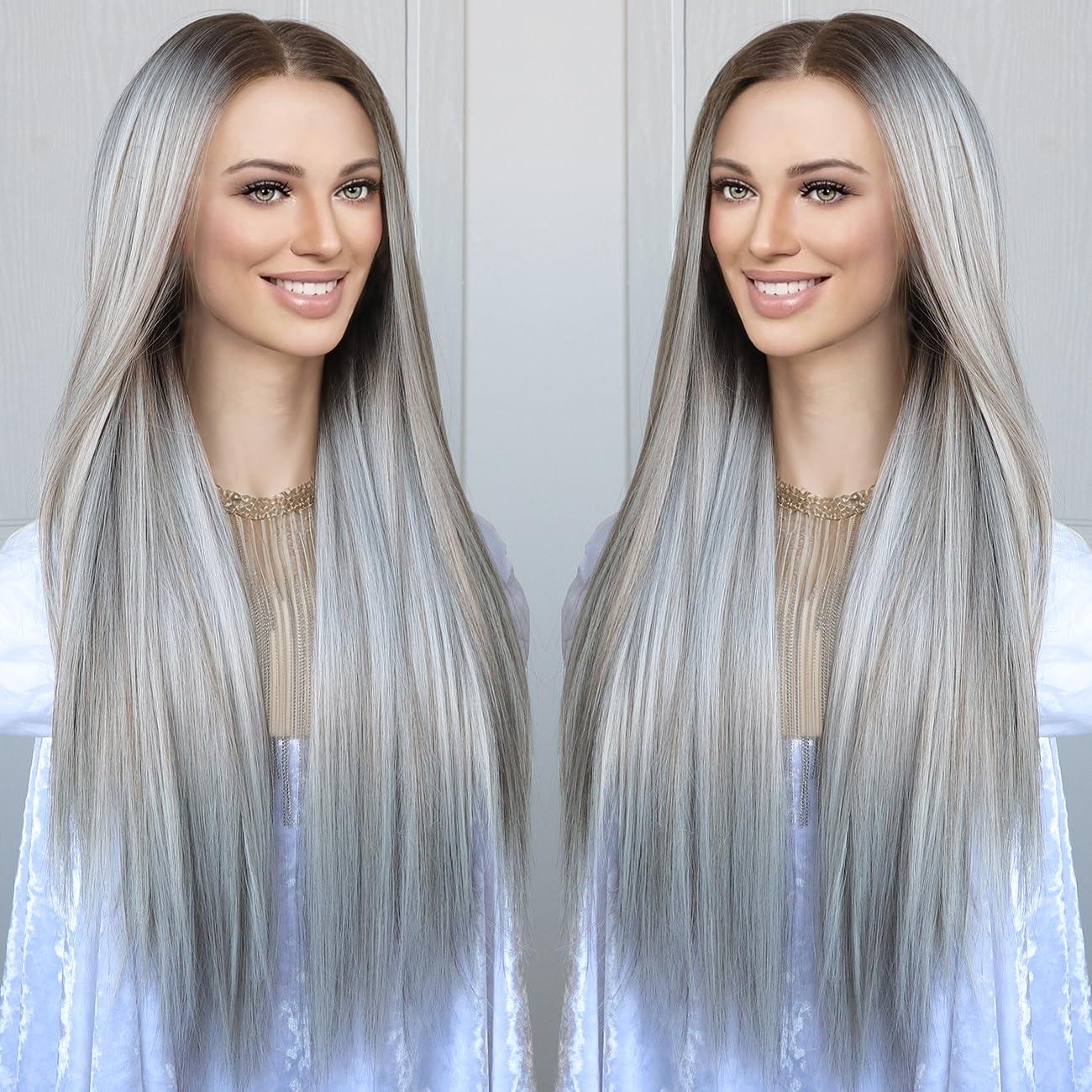 - Highlights 13x6 Frontal Wig: Ombre balayage ash blonde gray cyan lace front wigs are perfectly match all occasions, daily wear, wedding, parties, Halloween, Christmas, cosplay
