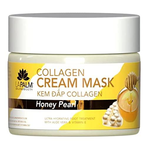 Collagen Cream Mask Honey Pearl 12 oz Ultra Hydrating Foot Treatment with Aloe Vera and Vitamin E Anti-Aging Treatment Formulated to condition and hydrate skin throughout the day. The exclusive blend of essential minerals helps regenerate and revitalize skin texture and appearance. Directions: Apply thin layer over clean feet and legs and rub in until fully absorbed. Do not rinse. Repeat as needed weekly. Apply massage oil or foot lotion after this step.