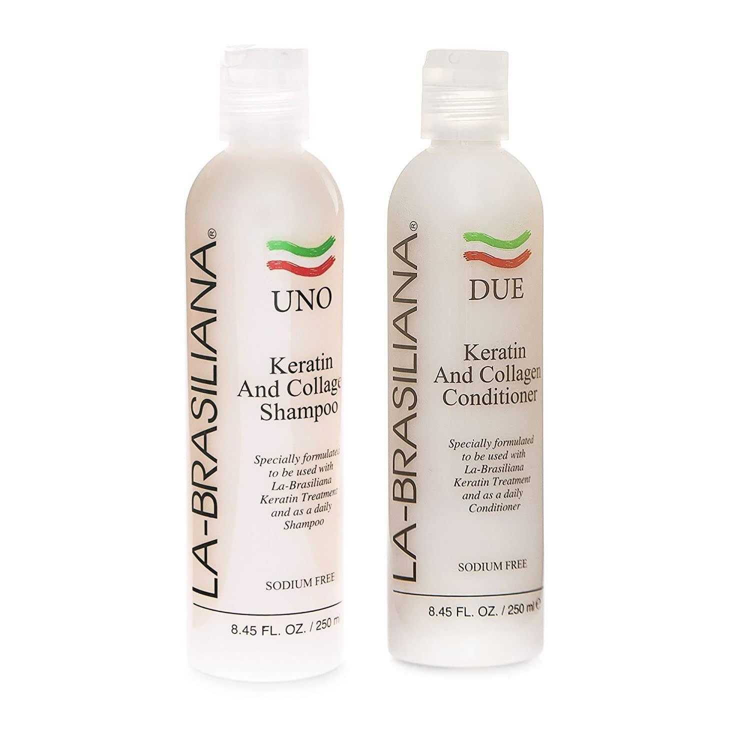 - DUE Conditioner: La-Brasiliana Due Collagen Conditioner Ideal for chemically treated hair. Restores shine and silkiness. Rich, concentrated formula means a little goes a long way. Sodium Free.