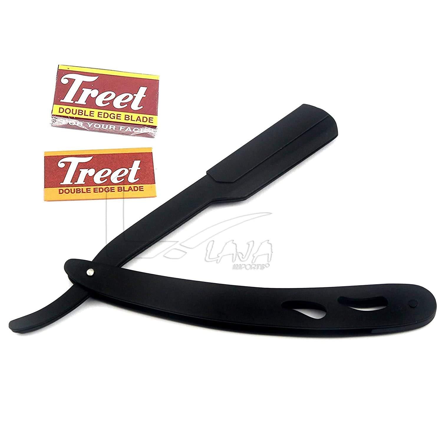 LAJA Imports Professional Matte Black Straight Edge Razor With 100 Single Edge Blades - Close Shaving Men's Manual Shaver Safety