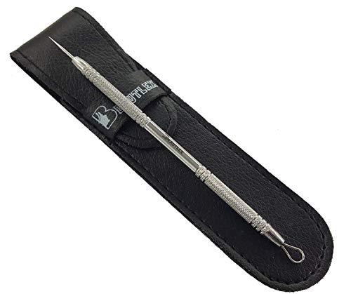 Beautlex Lancet for Facial Milia Remover and Whitehead Extractor. Double Ended Angled Circle Loop & Sharp Needle Pimple Popper Tool. Dermatologists recommended Design and Comes with Synthetic Leather Storage